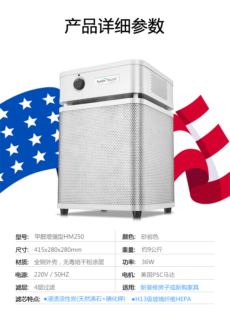 【美國原裝進口】推薦新裝修/除甲醛/除味 適用中小面積空間 - 奧司汀空氣凈化器HM250